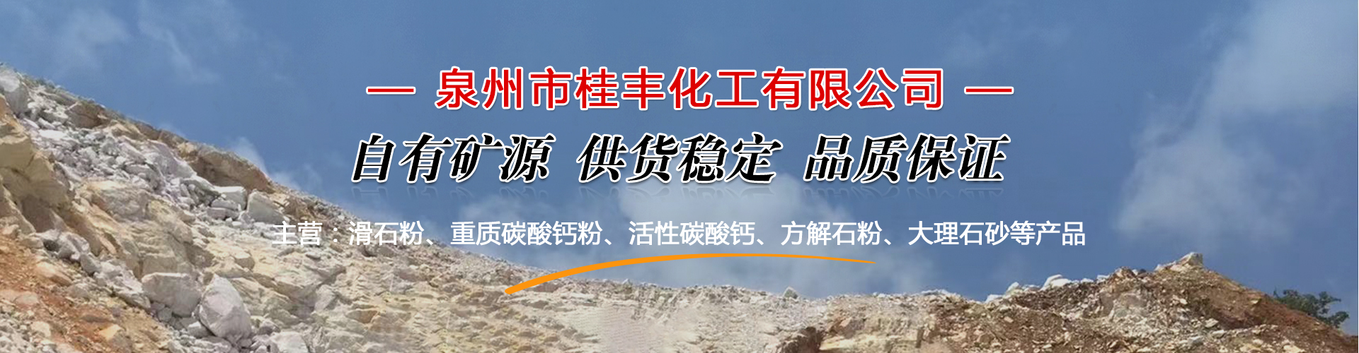 泉州市桂豐化工有限公司是一家有十幾年粉體技術(shù)研究和生產(chǎn)經(jīng)驗(yàn)的企業(yè),公司集粉體技術(shù)開(kāi)發(fā)、礦山開(kāi)采、粉體生產(chǎn)為一體。主營(yíng):滑石粉、重質(zhì)碳酸鈣粉、活性碳酸鈣、方解石粉、大理石砂等產(chǎn)品。專業(yè)生產(chǎn)十大系列10目-8000目石粉產(chǎn)品。得益于優(yōu)良的礦山礦石資源,我司生產(chǎn)的產(chǎn)品具有白度高,純度高,粉碎充分,粒度分布均勻,化學(xué)成份穩(wěn)定等特點(diǎn)。產(chǎn)品廣泛運(yùn)用于醫(yī)藥、化妝品、食品、鞋材、家裝、造紙、橡膠、塑料、涂料、油漆、油墨、陶瓷、電線、電纜等眾多行業(yè)。
